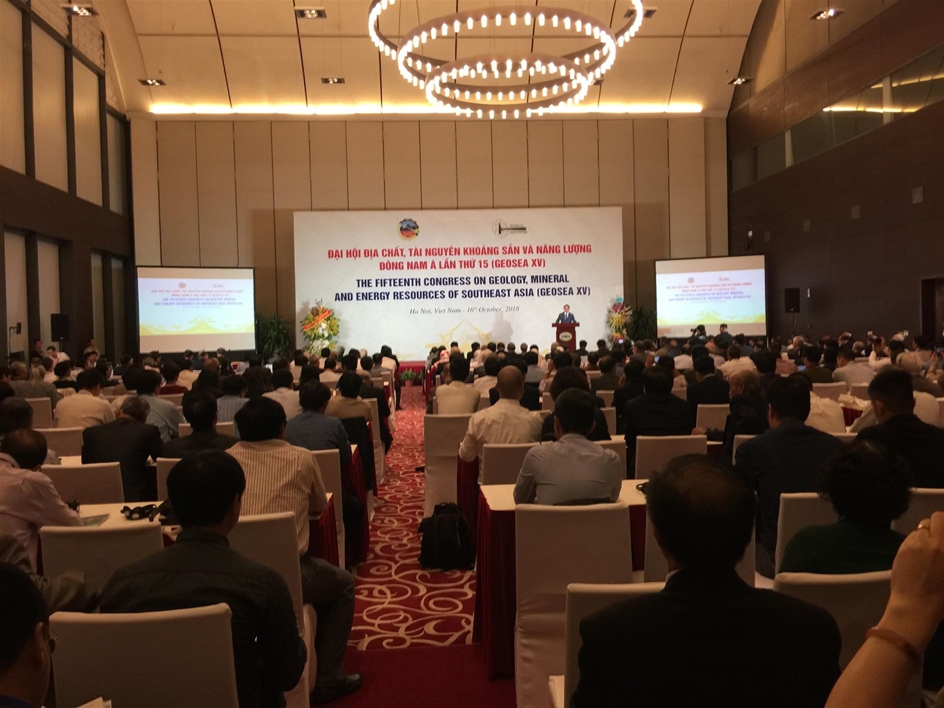 Trong 2 ngày 16 - 17/10/2018, gần 500 đại biểu là các nhà khoa học, nhà quản lý, các doanh nghiệp đến từ Việt nam và 21 quốc gia và vùng lãnh thổ đã cùng nhau trao đổi chia sẻ kinh nghiệm, thành tựu mới nhất về khoa học công nghệ và quản lý trong lĩnh vực địa chất, khoáng sản và năng lượng, hướng tới phát triển bền vững tại Đại hội Địa chất, Tài nguyên khoáng sản và Năng lượng Đông Nam Á lần thứ 15.